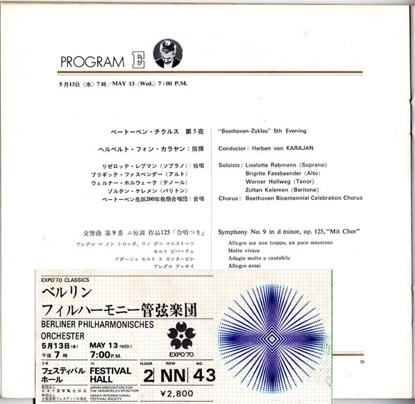 写真:EXPO70=カラヤン&ベルリン・フィル万博公演(第九公演1970-05-13)