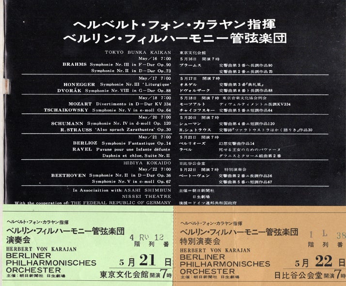 画像:カラヤン&ベルリン・フィル東京公演プログラム&チケット(1970-05-22)