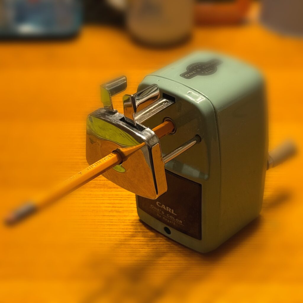 五線紙に定規を使って縦線を引く時間も惜しい。そんな理由で、この頃から自分用にカスタマイズした五線紙(当然縦線も引いてある)を、東京にある松本楽譜にオーダーして使うこととなった。紙の色は白、五線の色は緑。緑は目に優しい!?かどうかは定かではないが、音符は黒色なので、五線と音符や休符の色分けをすることによって、同色よりはっきりとして誰が見てもわかりやすくなる。またペンも当時はシャープペンシルを使っていたが、芯を出すために頻繁にノックするので親指が痛くなってしまう。アナログ的な発想ではあるが、鉛筆を2ダース(当時で言うオトナ買い?)購入して24本まとめて削って机の上に並べて置く。HBとBをその時に気分で使い分けていたように思う。大差はないのに微妙な違いがボクにとっては大きかった。