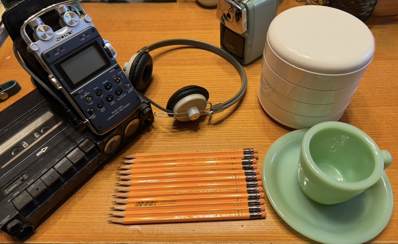 五線紙に定規を使って縦線を引く時間も惜しい。そんな理由で、この頃から自分用にカスタマイズした五線紙(当然縦線も引いてある)を、東京にある松本楽譜にオーダーして使うこととなった。紙の色は白、五線の色は緑。緑は目に優しい!?かどうかは定かではないが、音符は黒色なので、五線と音符や休符の色分けをすることによって、同色よりはっきりとして誰が見てもわかりやすくなる。またペンも当時はシャープペンシルを使っていたが、芯を出すために頻繁にノックするので親指が痛くなってしまう。アナログ的な発想ではあるが、鉛筆を2ダース(当時で言うオトナ買い?)購入して24本まとめて削って机の上に並べて置く。HBとBをその時に気分で使い分けていたように思う。大差はないのに微妙な違いがボクにとっては大きかった。